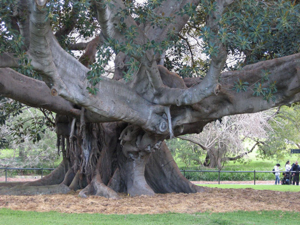 3. Bottom center: A giant Moreton Bay fig tree (also known as a strangler fig) in the Sydney Botanical Gardens, although the tree is native to the countryside.