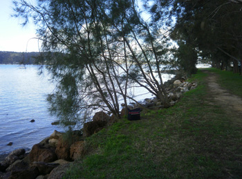 this picture of her Belle bag at the edge of the Hawkesbury River, made notable to readers in Kate Grenville's A Secret River.
