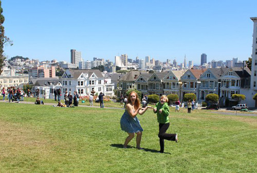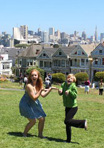 1. "Nina and Charlotte are clowning at Alamo Square, with the famous "Painted Ladies" row houses in the background.