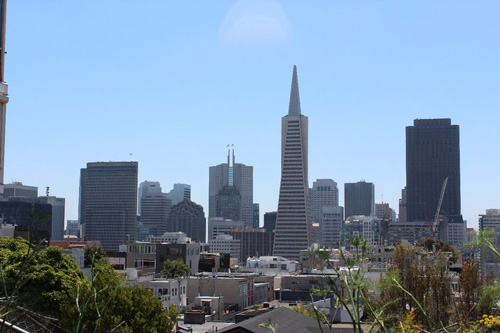 2. "The downtown San Francisco skyline, with the famous landmark that we like to call the "Ring-toss for Aliens Building"