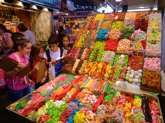 2. "La Boqueria market in the center of Barcelona off of its famous street, La Rambla, houses all