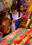 types of vendors selling fruits, vegetables, fish, confectioneries and spices for creating a